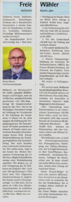 Die Freien Wähler unterbreiten dem Gemeinderat ihren Vorschlag für die Nachfolge des verstorbenen FWV-Mitgliedes Herrn Heinz Klenk im Bezirksbeirat von Heilbronn-Horkheim.