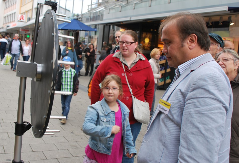 Das Glücksrad war im Einsatz. Es gab interessante Einzelgespräche an unserem 40-er-Köpfe-Plakat.