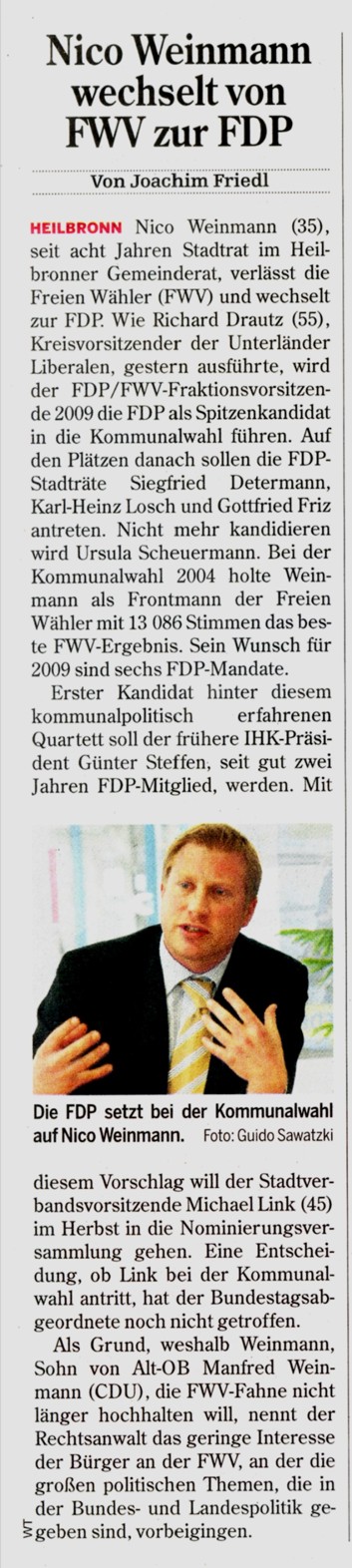 dass er nicht länger in seiner Meinungsfreiheit eingeschränkt werden wolle. Er übe Kritik am Führungsstil der CDU-Fraktionsspitze. Sein Schritt sei lange gereift und wohlüberlegt. Er bleibe der CDU verbunden, wolle aber in der Kommunalpolitik nur noch die Sachentscheidung zum Wohl der Stadt und von Sontheim in den Vordergrund stellen, frei von der Klammer einer Partei.| Evangelischer Mittwochskreis, Heilbronn-Biberach |