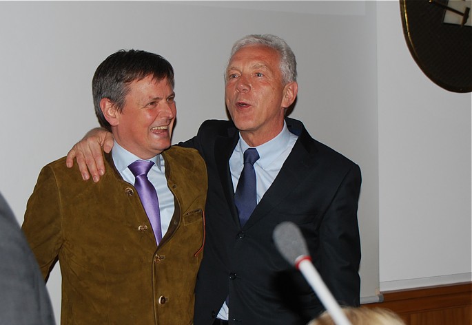 Nach der Neuwahl würdigten Stadtratskollege Malte Höch und der neue Vereinsvorsitzende Stefan Fiebig gemeinsam
