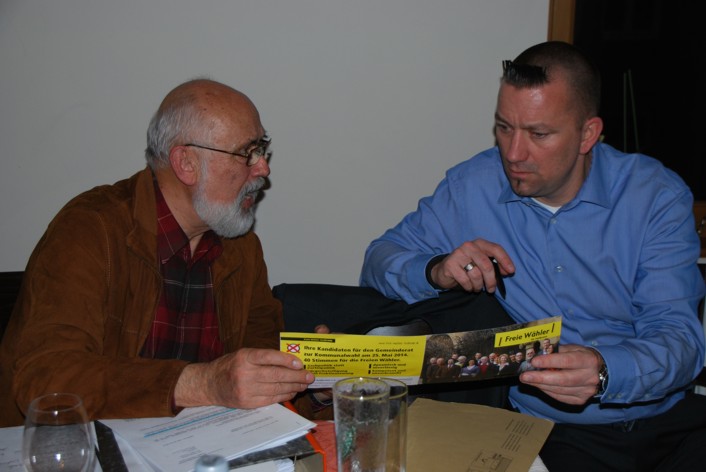 Die Freien Wähler trafen sich zur Monatsversammlung Februar wie üblich in der Weinvilla bei ihrem Mitglied Jürgen Sawall. An diesem Abend hatte man auch Vertreter der Bürgerinitiative Kleiststraße eingeladen um deren Argumente